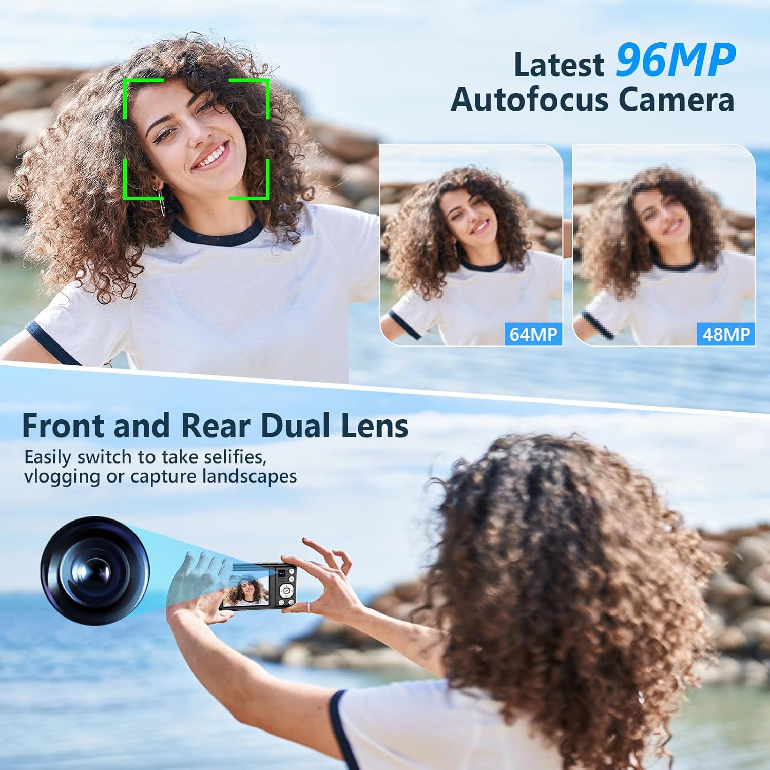 5K 96MP Digital Camera 6X Zoom Vlogging Dual Lens Bundle