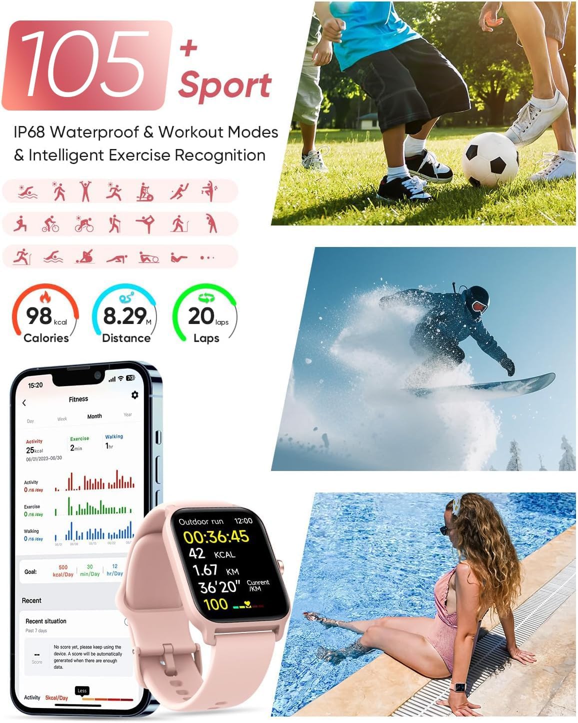 Smartwatch with Alexa 1.83″ HD Touch Fitness Tracker Pink