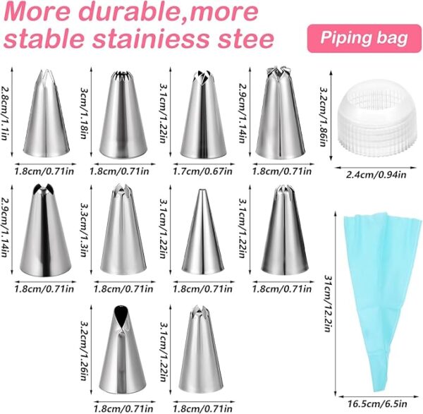 - Carefully selected parts: Frosting tips for decorating set of icing nozzles contains the 10 icing tips for cookie decorating and 1 icing bag in the world of baking