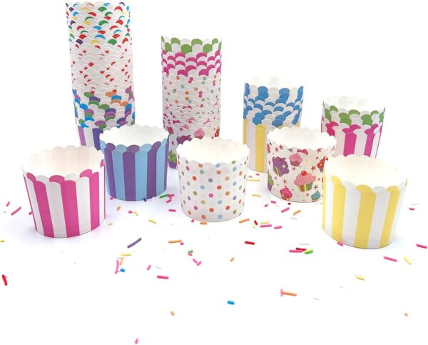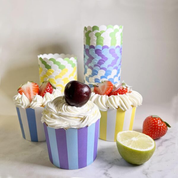 - Oil-resistant, water-resistant, anti-freeze, high temperature, no fading, no sticking and no secondary pollution. For making cupcakes, safety and health, attractive appearance, for oven baked. To do a small cake, muffin, also do the chocolate at the bottom of the receptacle to use,you will love it very much! Ideal for modern home kitchen and cafe,Enhance the beauty of your cake and your kitchen