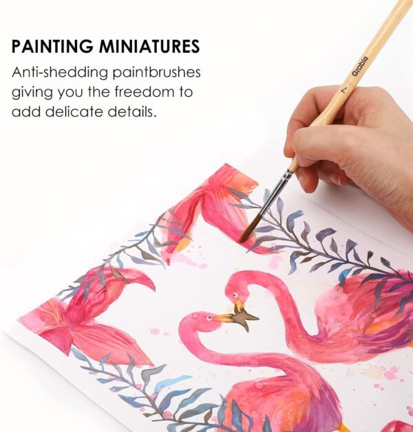 - All-Purpose Miniature Paint Brushes: versatile miniature paint brushes are perfect for fine detailing and painting in small, tight spots. They work well with a variety of paints, including oil, watercolor, acrylic, enamel, cel-vinyl, and gouache. Ideal for a wide range of art projects, including wildlife, botanical, portraiture, doll, illustrations, miniature, model ships and airplanes, arts and craft, rock, leather, gesso and ceramic, or body, nail, and face art painting.