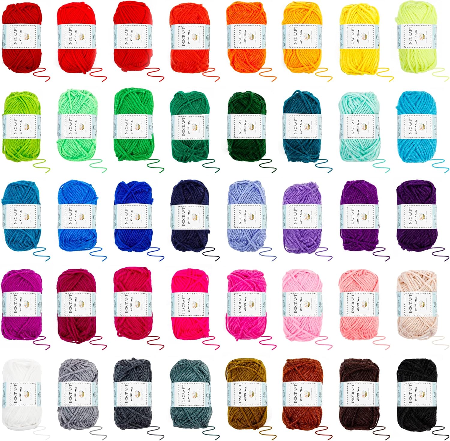 - 40 Colors Total of 1600 Yards Crochet Yarn: This fantastic value 100% acrylic yarn pack contains 40 very wide range of colors, bright and lustrous, no duplicates. A ball of acrylic yarn weighs 16g and the length is about 40 yards.