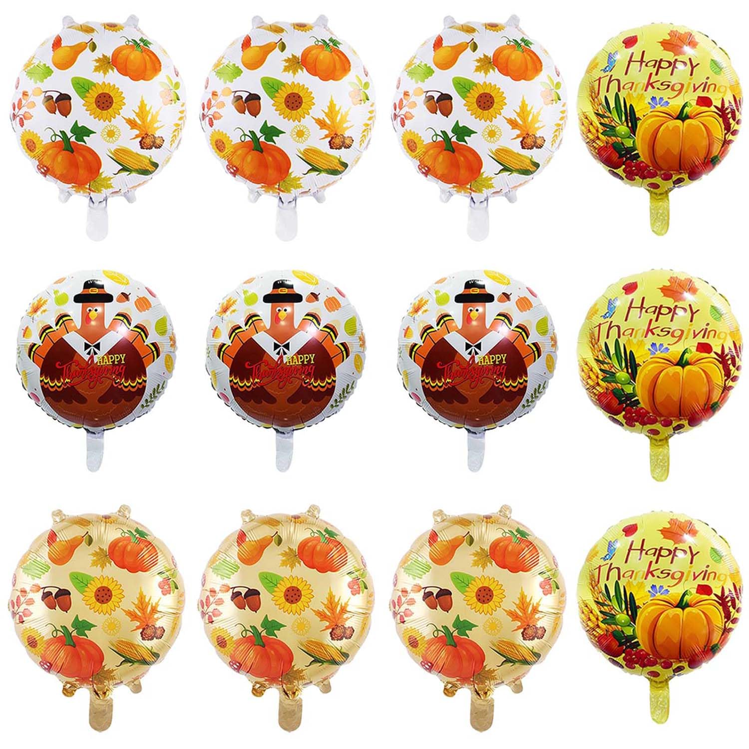 12Pcs 18″ Fall Foil Balloons, Thanksgiving Turkey & Maple Leaf Party Decorations