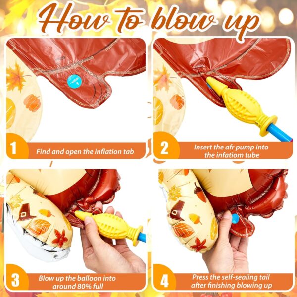 - Robust Material and Autumn Colors: our Thanksgiving decorations balloons are crafted with reliable aluminum film; The purity of the material allows the balloons to have autumn colors similar to the representations in the featured pictures; The balloons’ vibrant fall color palette elevates the atmosphere as you celebrate the fall season and Thanksgiving Day