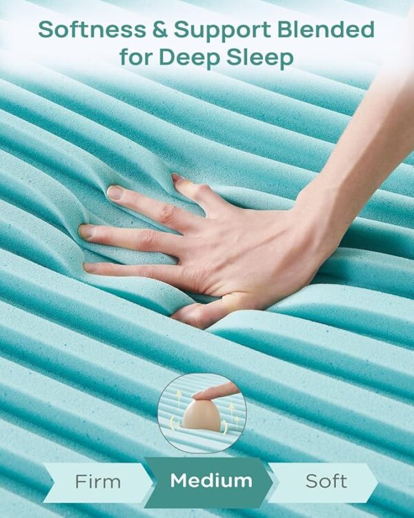 • 【Next-Gen Cooling Gel Tech】- Our full mattress topper features advanced cooling gel technology, designed to efficiently dissipate heat for a cooler night’s sleep. The innovative airflow channels enhance breathability and improve air circulation, keeping you refreshed throughout the night. Perfect for hot sleepers, this cooling mattress topper helps regulate temperature, reduce night sweats, and deliver a truly comfortable cooling sleep experience