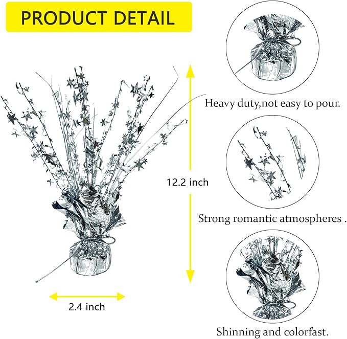 - Material: Glitter aluminum foil, shinning and colorfast. Size: Each one is about 12 inches tall.
