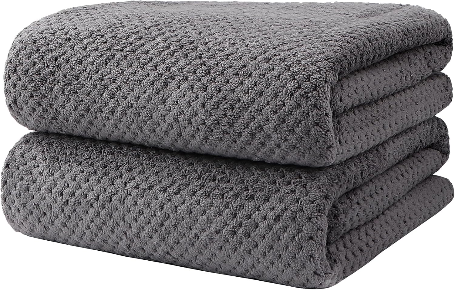 2-Pack Microfiber Bath Towels, 27″x54″, Ultra Soft & Quick-Dry, Grey