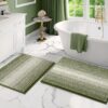 - :You will get 20″ x 32″ Plus 16″ x 24″ bathroom rug sets, which are made of high quality fluffy plush chenille microfibers. The soft fibers are very dense and not easily turn deflated after use, soothing your tired feet and shielding your toes from the cold floor. The density and plushness of our pile surpass that of most other brands