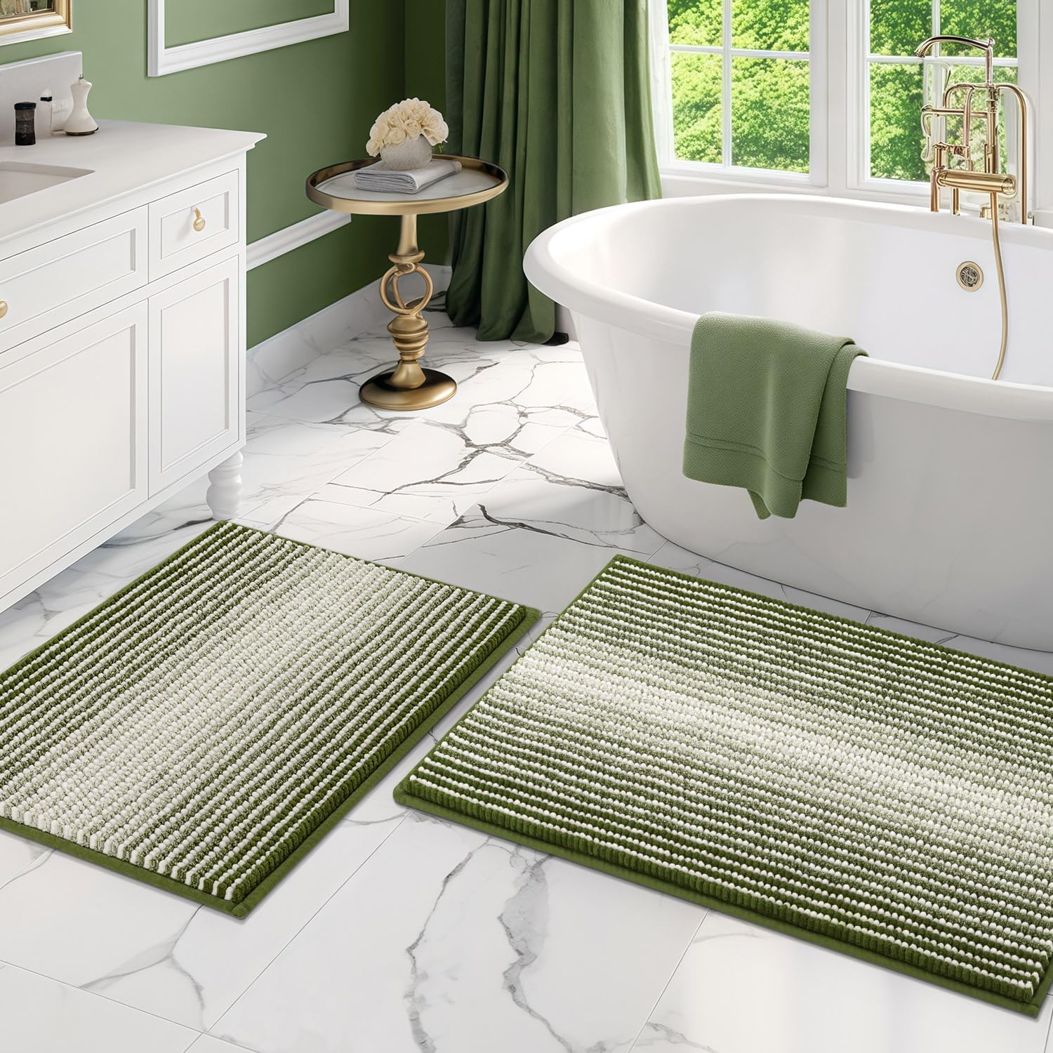 - 【EXTRA ABSORBENT BATHROOM RUG】: The luxury performance chenille microfibers can quickly absorb moisture from your feet when you step out of the bath or shower, and save your floors from dripping water, and dries quickly, making your feet feel the ultimate luxury enjoyment