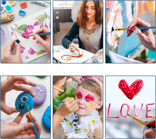 • Multi-purpose Painting Brushes: Assorted Sizes & Shapes of Paint Bush Bulk Perfect for Art Painting, Which Can Cover all Your Needs. Works Well with Art, Watercolor, Oil, Canvas, Gouache, Rocks, Enamel, Vinyl, Acrylic Painting, Body, Nail, Face Painting, Fabric, Egg, Miniature, Model, Wood, Glass, Cup, Ceramic, Fine Work, Art Class, Craft Art Painting, DIY Art Crafts etc. Acrylic Paint Brushes Allow You to do Fine Detail Painting Precisely to Reach Tight, Small Spots or Tiny Points.