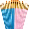 20-Piece Paint Brush Set – Acrylic, Oil, Watercolor Brushes for Kids & Adults, Blue+Pink