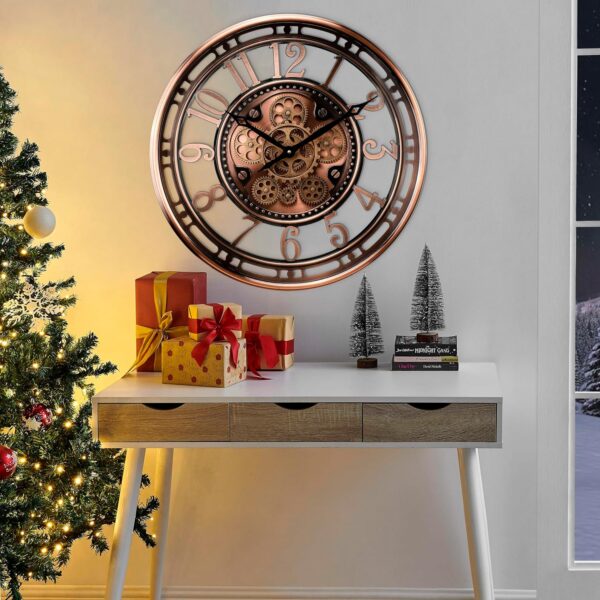 - [Modern Real Moving Gears Wall Clock] Industrial steampunk movement inspired, when you put 2 AA batteries in, various exposed aged gold/silver gears start move, definitely an eye-catching wall décor luxury antique gear clock for your modern home or office wall décor, surely capture anyone’s attention