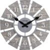 - IT’S IN THE DETAILS – Our round Numeral Windmill Wall Clock has a gray printed faux shiplap face, a galvanized silver painted finish, and is made of plastic with metal hands