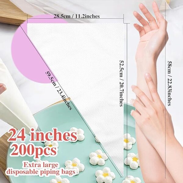 24″ Extra Large Piping Bags – 200pcs Disposable Anti-Burst Bags for Cake & Cookie Decorating