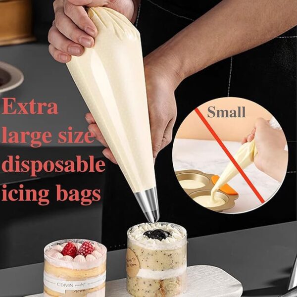 • 24-inch Icing bags: 24-inch 200-pcs extra large piping bags can hold more buttercream frosting and you don’t have to keep changing bags.