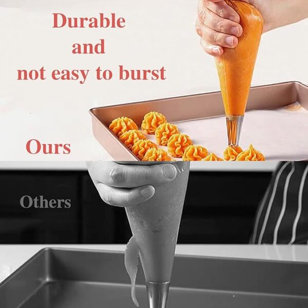 • Anti-slip design: Frosting piping bags have textured surfaces making them better to grip and not slip off hands.