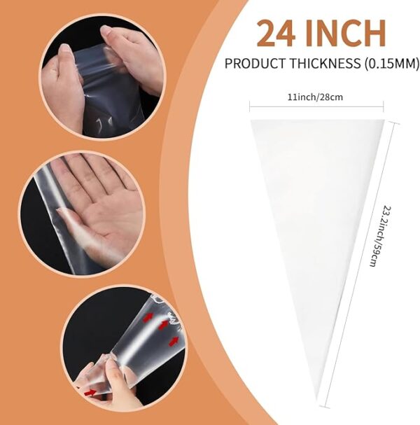 • Extra Large Piping Bags:These 24 Inch Extra Disposable Piping Bags Are The Largest Ones You Can Find In The Market.They Can Hold 2 Liters Volume As Measured In Water24 Inch Tipless Piping Bags Is Much Bigger Than 12 Inch & 14 Inch Available In The Market.(While The Mainstream Product In The Market 12 Inch And 16 Inch Can Only Hold 0.3 And 0.6 Liters Respectively). Great For Professional Baker And All People Who Like To Bake, No Need To Refill Bags Frequently To Ensure Constancy Icing.