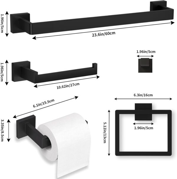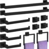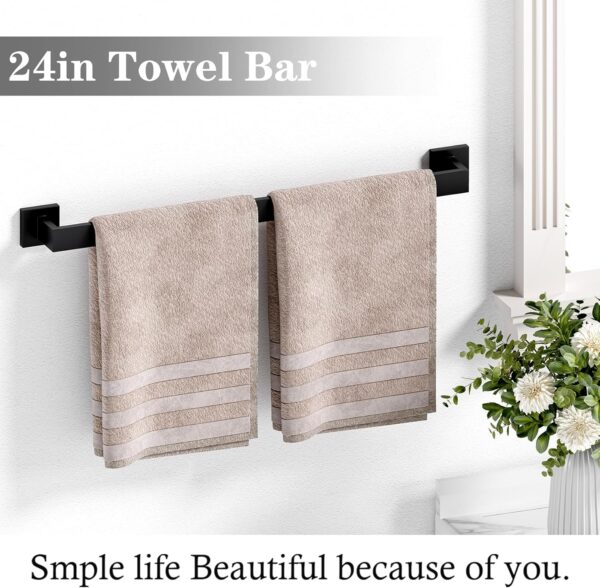 - 12 Pcs Bathroom Set: includes 2×24 inch bath towel bar, 2x hand towel holder,2x towel ring,2x toilet paper rod and 4x hooks,The perfect combination can make the bathroom neat and beautiful.