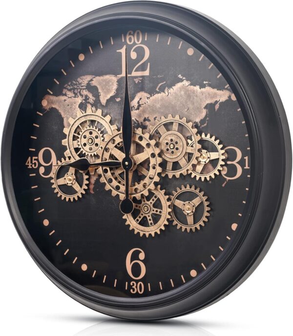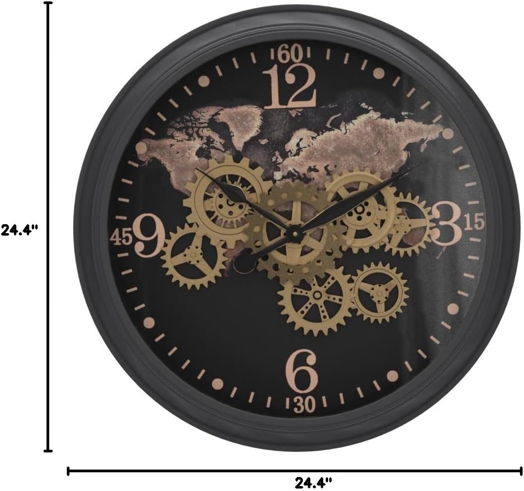 - [Enjoy Accurate Quartz Movement] Based on high-torque, quality silent quartz movement, it function as beautiful wall décor pieces besides telling time, and bring both style and purpose to any room. Sit and watch the time fly by with this stunning 24 Inch wall clock with working gears