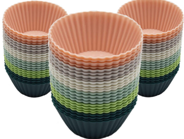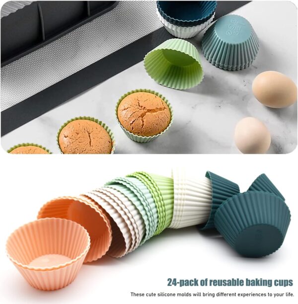 - 【24-pack of reusable baking cups】 Made of 100% food-grade silicone, BPA free & free of odor, Ideal for baking muffins, cupcakes, pudding, tart, bread, mousse, jelly, conditioning food and more.