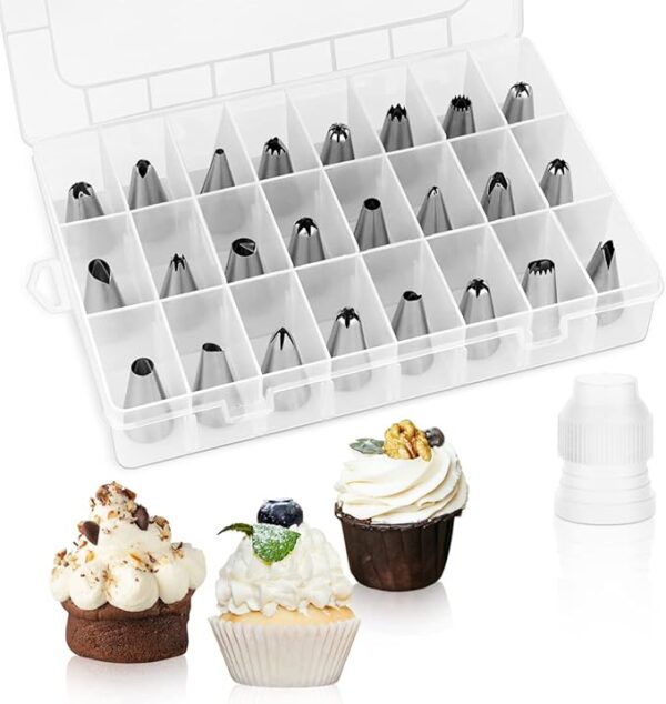 - Food grade material: Our piping tips are made of food-grade stainless steel, smooth and beautiful surface, sturdy and durable, anti-rust and reusable, safe for your food; Each pipe nozzle is placed in a separate compartment for easy storage and prevention of mixing