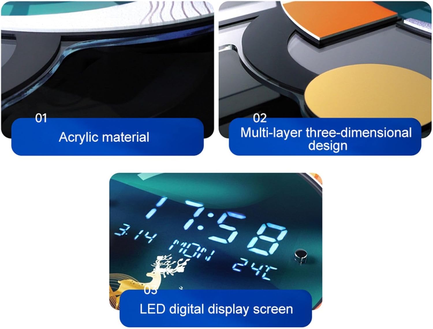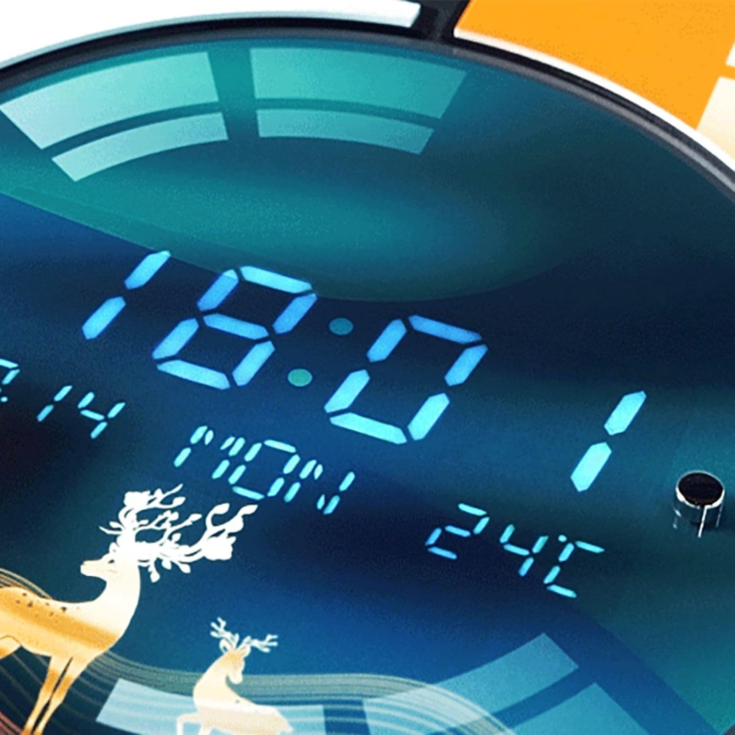 - Multifunctional LED Digital Clock: Large wall clock features a multifunctional digital display, showing the time, date, day, and temperature clearly. Its voice-activated mode lights up the screen when sound levels reach 70 decibels, making it perfect for both daytime use and as a functional night LED clock for the bedroom or living room.