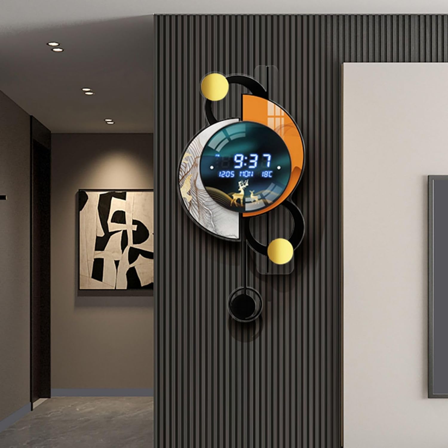 - Modern and Stylish Wall Décor: Designed with a sleek 26-inch round abstract style, this decorative wall clock complements mid-century modern wall décor, blending seamlessly into living rooms, kitchens, offices, or bedrooms. The clock’s clean design and elegant LED display make it a standout decorative clock for walls in any setting.