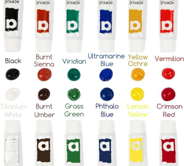 • Various Accessories: Falling in Art 9×12″ canvas panels are great for acrylic and oil painting. 12 different acrylic tubes can match your basic painting needs with a palette. The nylon brush set includes round, flat, and angular shapes, fitting for any painting style.