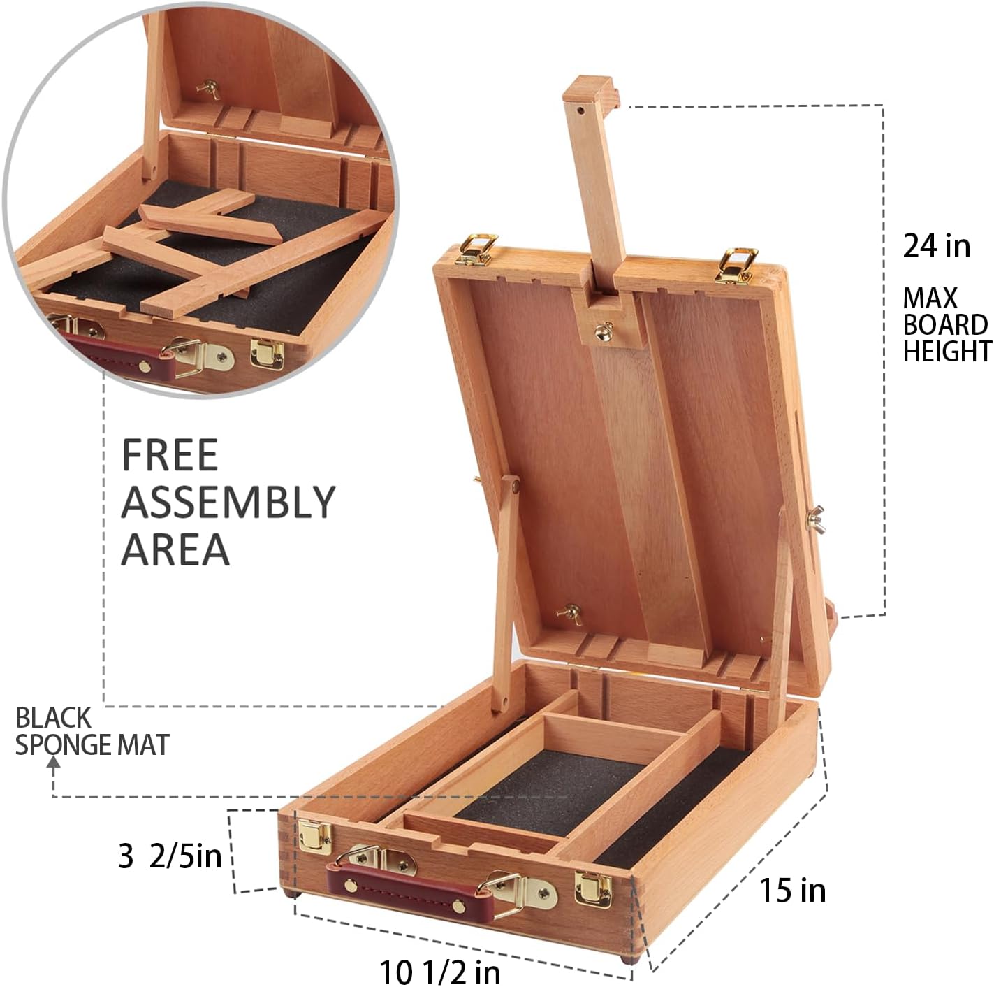 • Beechwood Easel Box: Falling in Art table easel box features a smooth surface and fine workmanship. Adjustable settings allow you to find the right angle for creation, protecting the neck and back from fatigue. Internal storage compartments are convenient for storing drawing tools.