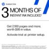 HP+ & Instant Ink Ready: Print from smartphones, PCs, or tablets with the HP app and enjoy a 3-month Instant Ink trial for automatic ink delivery