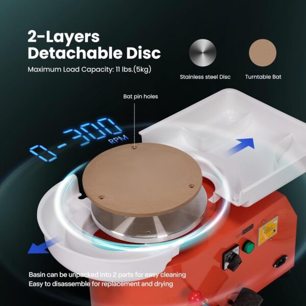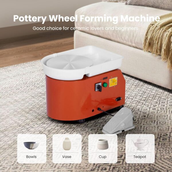 - PRACTICAL & EASY TO CLEAN – The pottery machine adopts a compact structure, fine spray process and small footprint; Equipped with an aluminum alloy wheel with a diameter of 28 cm (11.0″), offering ample space for your pottery-making project; The detachable ABS basin makes cleaning and storage a breeze, adding convenience to your pottery journey