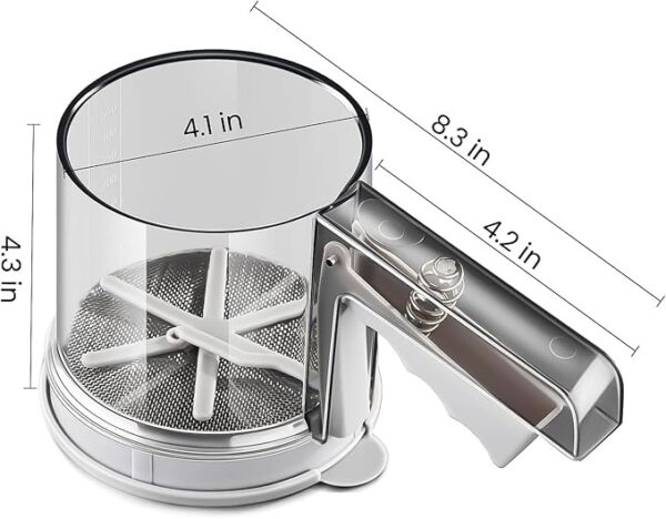 • Beautiful sieve that holds 3 cups: Made of high-quality food-grade PP material + double-layer stainless steel mesh layer, you can use it with confidence. The upper part of the flour sieve is made of PP material and polished, so this beautiful cup is called “crystal cup craft” by users. It is suitable for all home baking because it can hold more flour than most household sieves. The measurement value is engraved on the transparent glass for reference when adding flour.