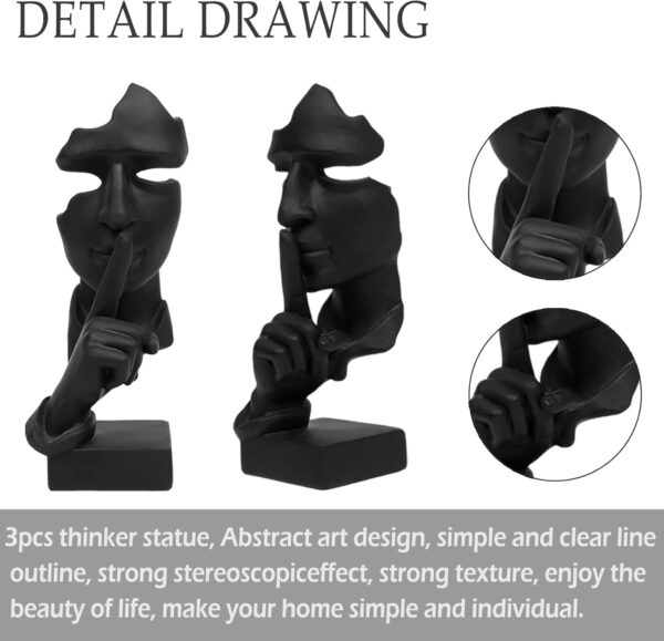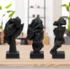 3 Pcs Abstract Thinker Statues – Silence is Gold (Black)