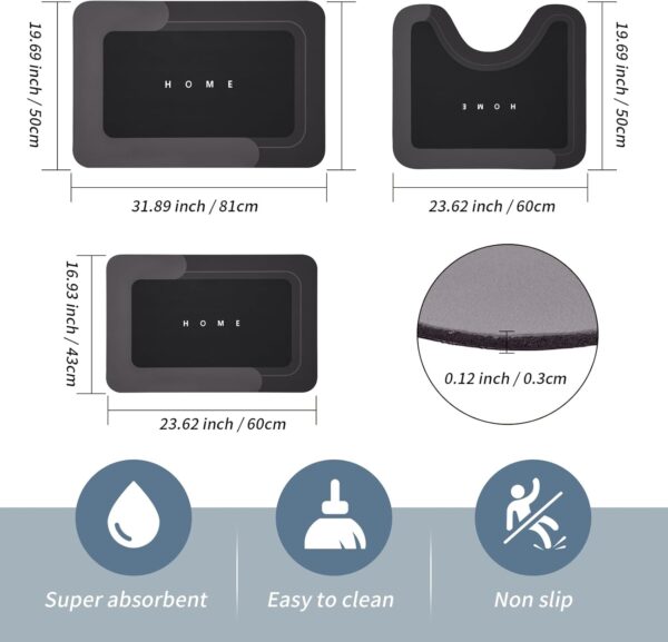 - 【Soft and Comfortable】They are made of high-quality diatom mud material, which is comfortable to stand on, with smooth surface, no fiber falling, and will not fade after long time use. They are super absorbent floor mats that suitable for family life.