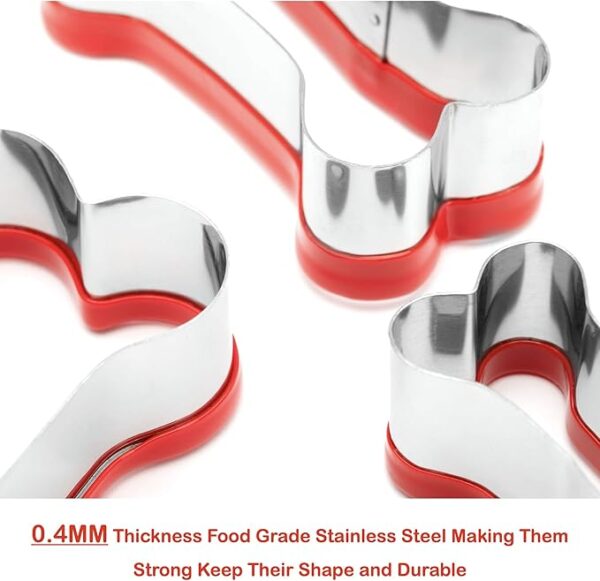 • The dog treat bone cookie cutters are made of sturdy and durable 0.4mm materials, ensure they will last for a long time and you don’t have to worry about your child bending them out of shape.