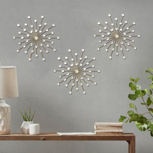 3-Piece Gold Metal Jeweled Wall Art – Crystal Star & Sun Décor with Rhinestone Accents