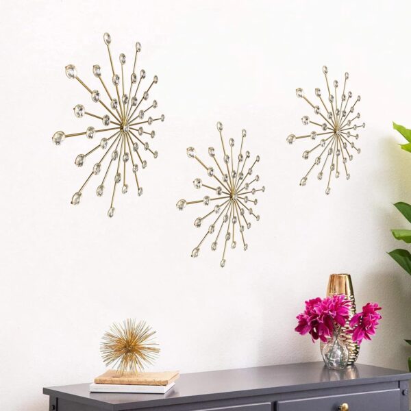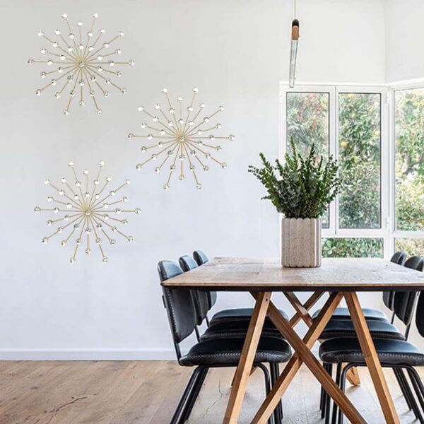 • 【 METAL STRUCTURE COATED WITH BRIGHT GOLD FINISH 】made of sturdy iron in an eye-catching design detailed with sparkling jewels, these diamond wall art features in bright finish and shining charm, will add a unique style to your room.