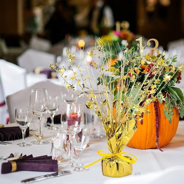 - Golden Pentagon Decoration: these pentagram party centerpieces for tables are designed with gold metallic thread and classic elements of die cut foil pentagram shape centerpieces, with the base wrapped in gold foil paper to keep the centerpiece stable, making it an ideal addition to your decor