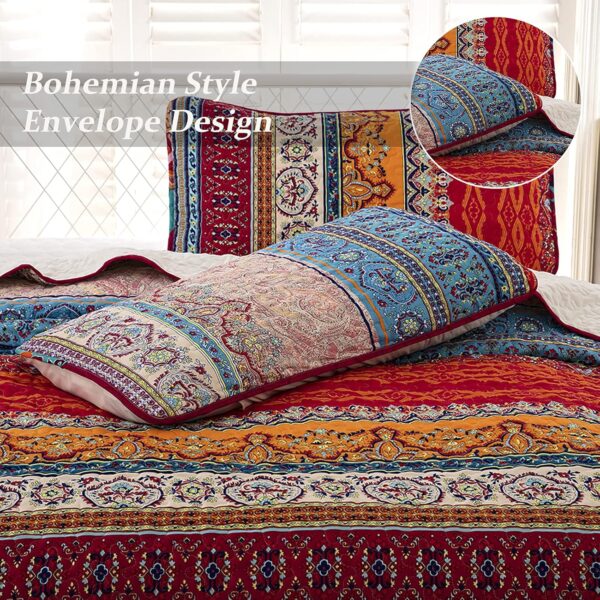 - 【Bohemian Quilt King】Boho king size set bed quilt includes 1 quilt (104×90 inches), 2 pillowcases ( 20×38 inches). Perfect gift choice for your families and friends. Because of random clipping, the pillowcases may be a different pattern.