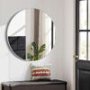- UPDATE YOUR BATHROOM: 39 Inch diameter large round mirror can visually make your home more spacious and more inviting while can serving as functional wall art, making your room more artistic and bright, suitable for the bathroom, entryway, living room, bedroom, more, which is a good wall decoration