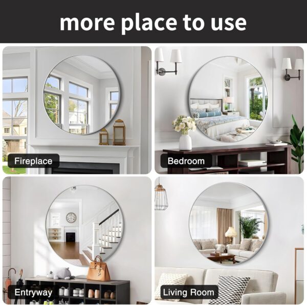 - HD EXPLOSION PROOF GLASS: GLASHOM The glass of the 39 inch silver circle mirror uses premium HD floating glass material to ensure a bright field of view and real high-definition images without distortion. Explosion-proof and shatter-proof technology provides an extra layer of protection and no debris splash, making it safer and more protective to use.