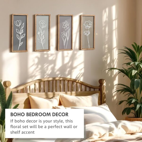 - Unique 3D Floral Cutout Design – Each piece features raised wooden floral cutouts that add texture and depth, setting your new decor apart from the usual prints and pictures. Designed with carefully selected earthy colors that are easy to style in multiple arrangements.