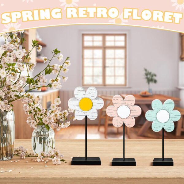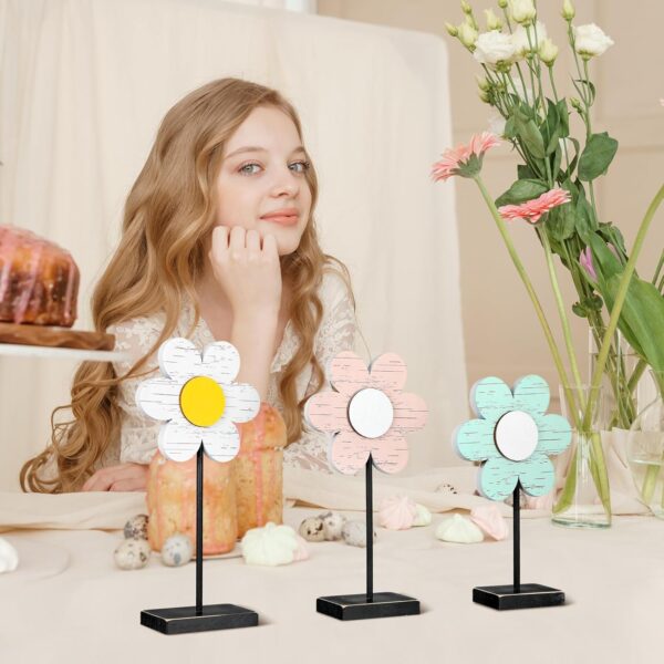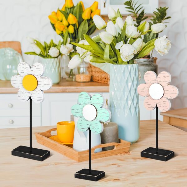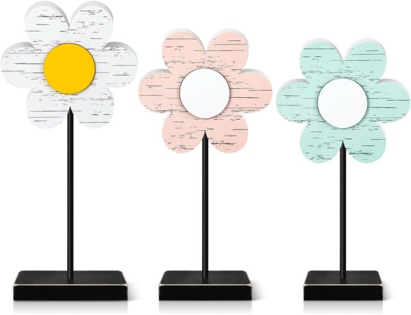 3pcs Spring Flower Wood Table Signs – Rustic Farmhouse Centerpieces