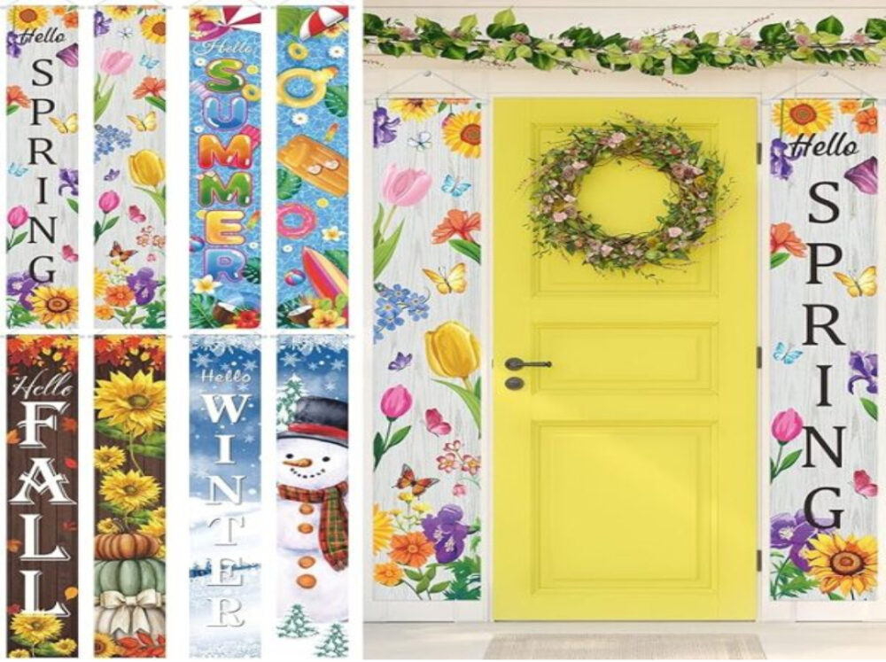 • 4 Seasonal Door Banner Decoration: You will get 4 seasonal Door Banners including 1 Spring Door Banner,1 Summer Door Banner,1 Fall Door Banner,1 Winter Door Banner. They further set off a Seasonal atmosphere of your door and your home