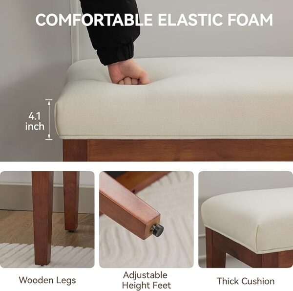 • Comfortable Seating with Thick Premium Cushioning: Designed with 4.1-inch high-density foam,this bed bench delivers exceptional comfort and support.Its thick cushion provides a plush,relaxing seating experience, making it perfect for bedrooms,entryways,or living spaces.