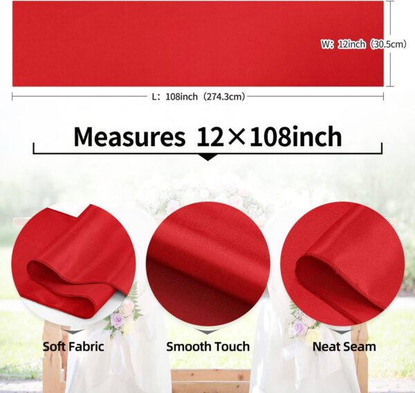 - 【Package Includes】:Each package includes 5 pieces of red satin table runners, each measuring 12 x 108 inches.