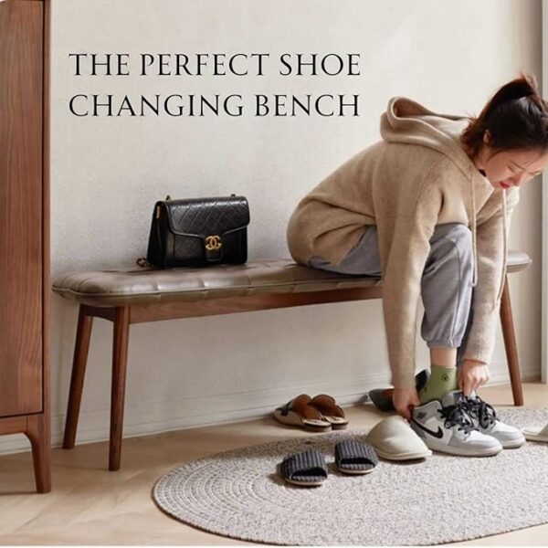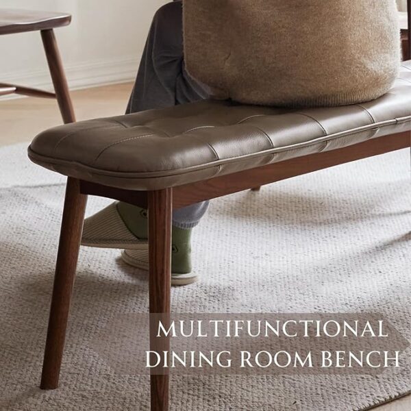• Elegant Design- This bench boasts the cowhide leather seat exudes a sense of luxury with walnut oak wood bench frame. Placed at the foot of the bed, this bench serves as both a functional seat and a stylish accent. Dining bench in neutral brown walnut color is a perfect addition to bedrooms, entryways, or living rooms.