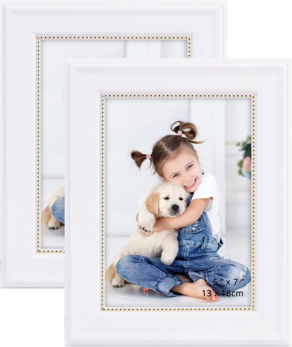 - SIZE: Made to display 5″ x 7″ pictures photos prints. Opening Size 4.5″ x 6.5″, 1.25″ wide and 1″ thick molding. Overall size is 7″ x 9″ x 1″.