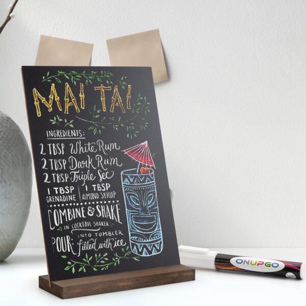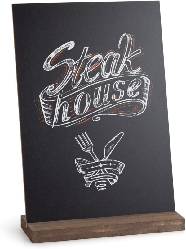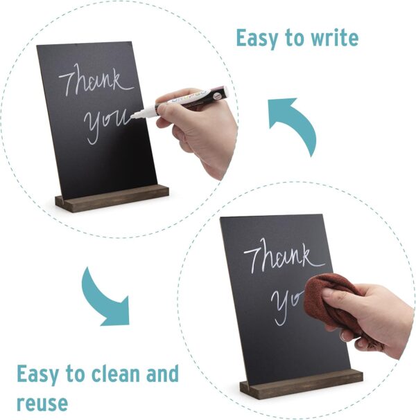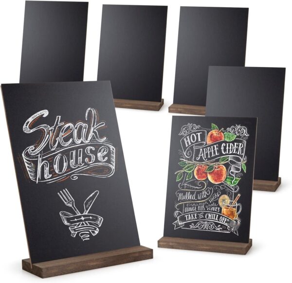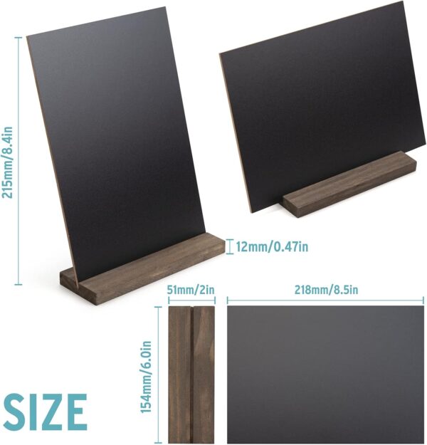 - SET OF 6 WITH CHALK MARKER: Package include 6 tabletop chalkboard signs with wood bases + 1 marker. Our double side mini chalkboard signs for tables have two ways of placing – Horizontal or vertical, you can have one more a choice.