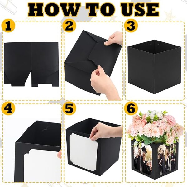 - Suitable Size and Adequate Amount: this package contains 6 black graduation photo boxes, sufficient quantity, ideal for decorating your graduation party; Each measures 9.05 x 7.08 x 7.08 inches/ 23 x 18x 18 cm, Suitable for 6×4,7×5 inch photos, showcasing those Learning era moments
